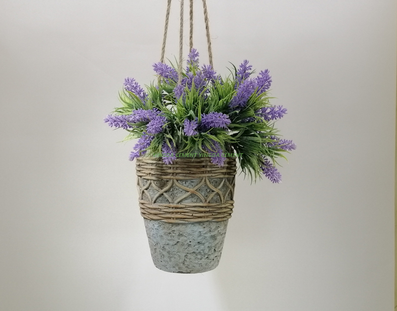 Modern novelty balcony decoration cement flower pot hanging planter pots with jute handle
