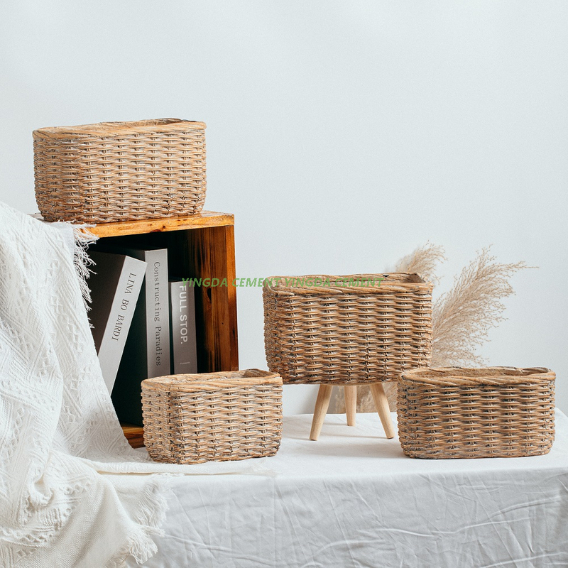 unique bamboo woven basket design succulent flowerpot home decoration cement pots