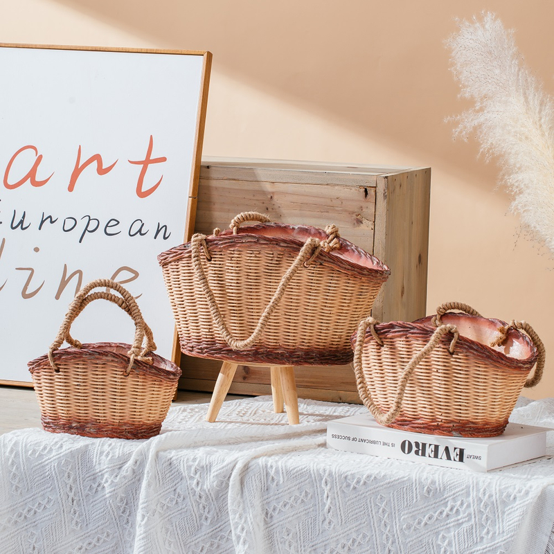 unique bamboo woven basket design succulent flowerpot home decoration cement pots