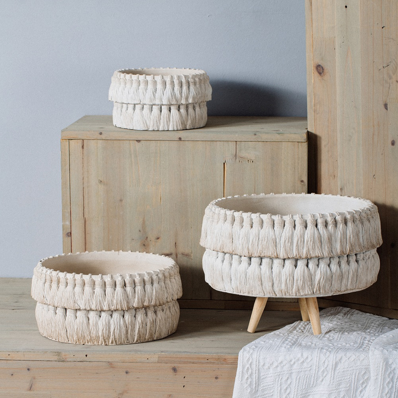 Bamboo woven design concrete flower pot light color decoration cement flower pots
