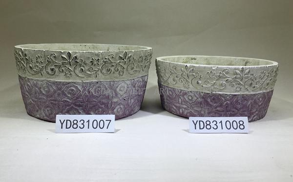 Emboss Bowl Round Cement Planter for home and garden Beautiful relief surface, pastoralism style, suitable for outdoor, indoor, desk-top decorations With other shapes avalibale: Vase cylinder, pot round, bowl round, etc. Color: Blue, Purple, Pink, Blue and appointed colors are available.