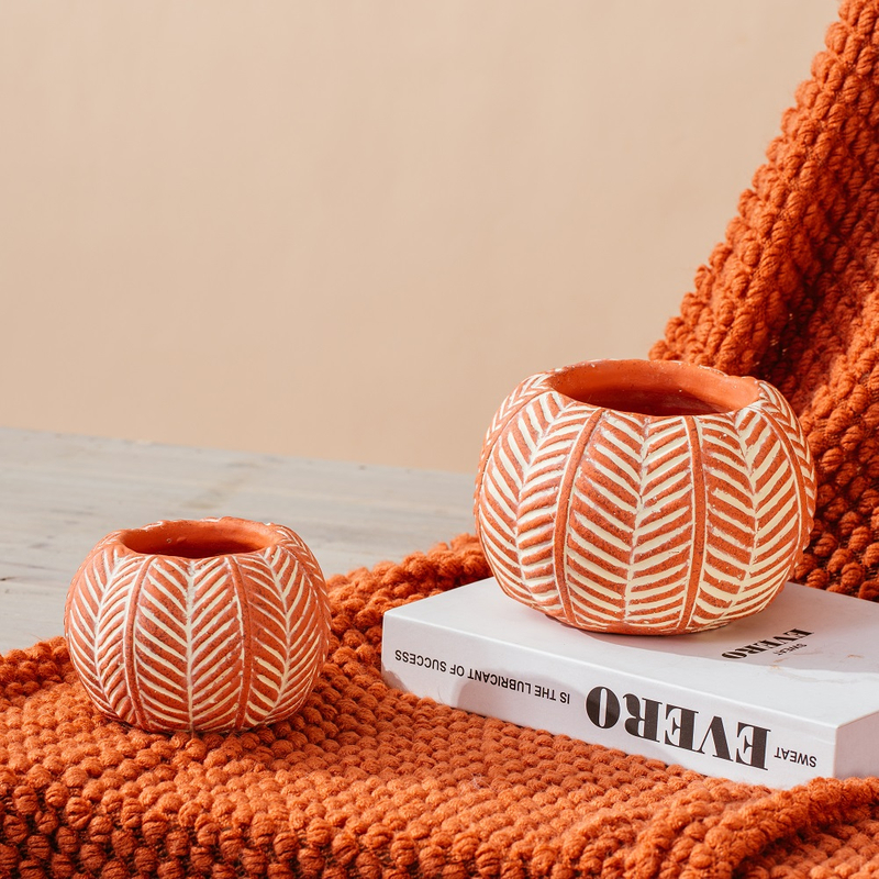 Embossed modern cement garden pot vegetable design pumpkin shape planter flower pot