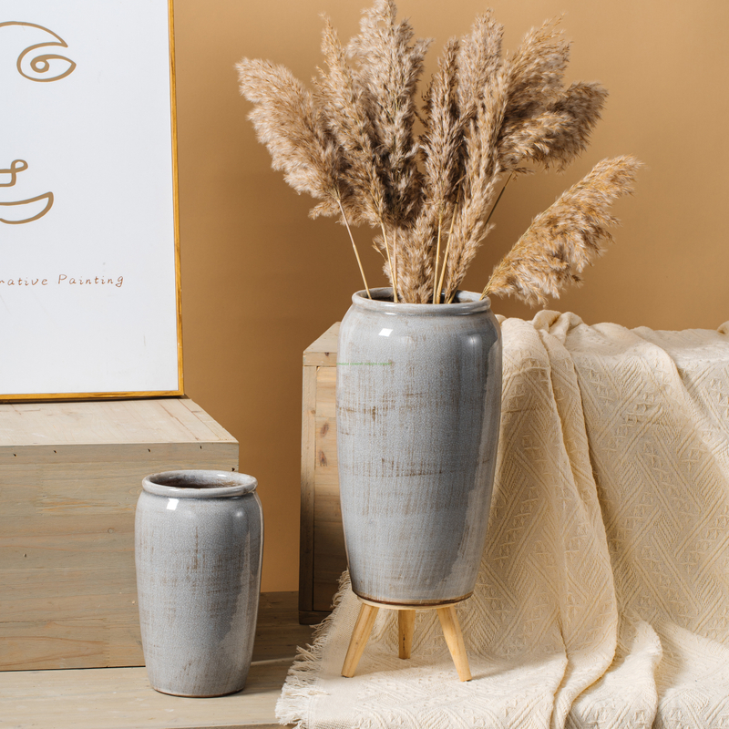 High quality customizable size coarse florero terracotta pot jar rustic vintage large floor flower vase