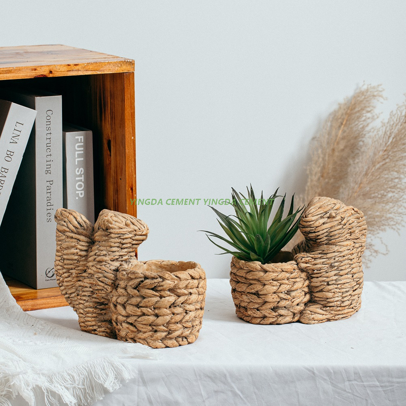 Home Garden Hot Selling Bamboo Woven Design Cute Animal Shape Succulent Planter Small Cement Flower Pot