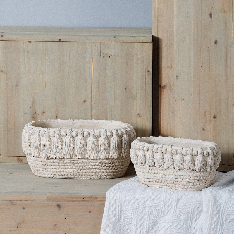Bamboo woven design concrete flower pot light color decoration cement flower pots