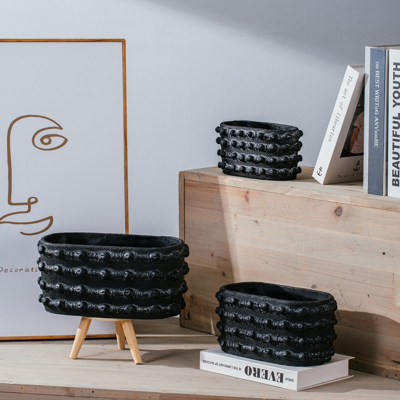 Bamboo woven design concrete flower pot light color decoration cement flower pots