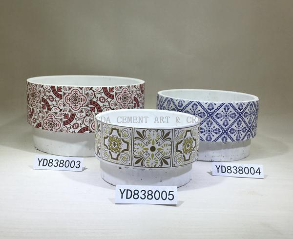 Antiqued decal pattern matte indoor outdoor cement flower pot garden decoration concrete planters