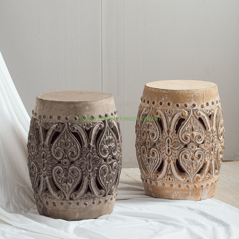 Vintage Style Exquisite Hollowed Out Stool Chairs Outdoor Decoration Garden Cement Drum Stool