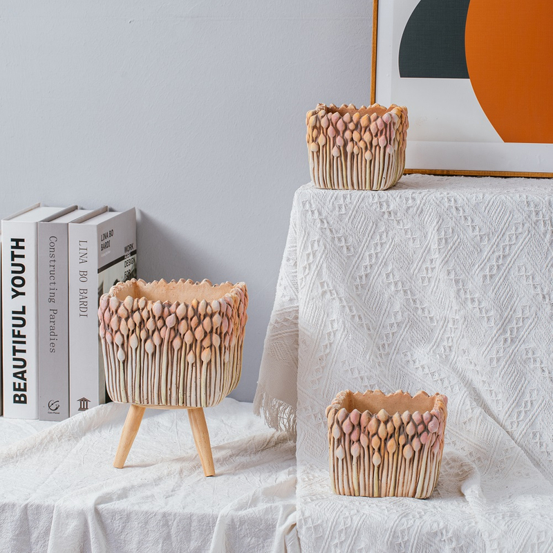 Bamboo woven design concrete flower pot light color decoration cement flower pots