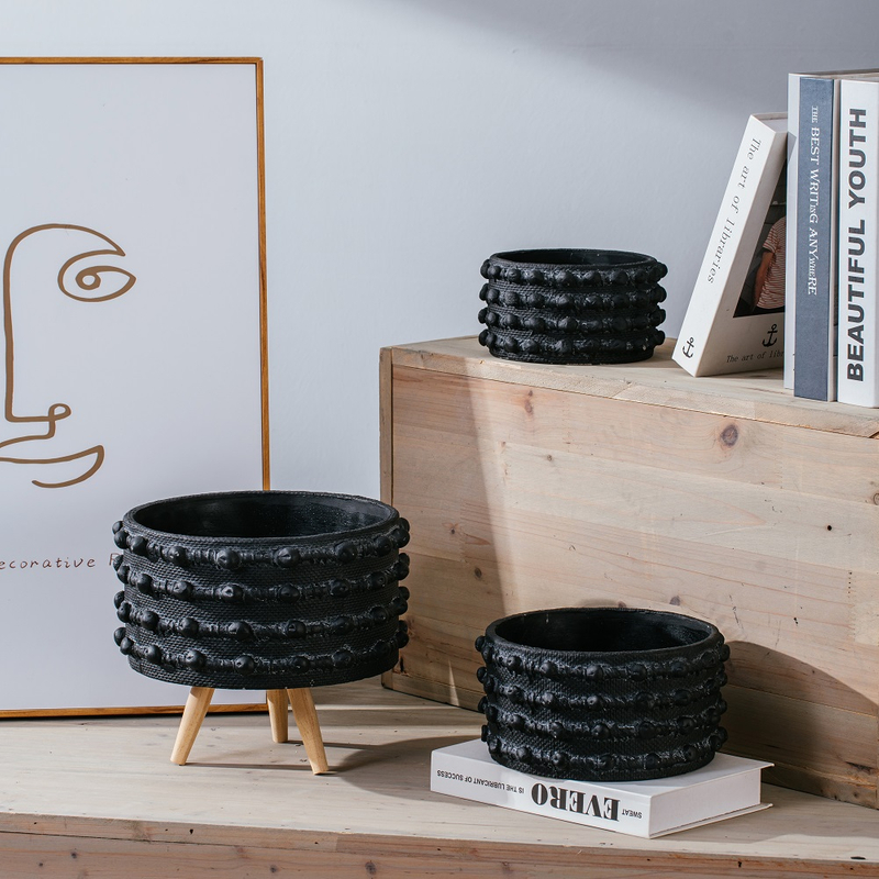 Bamboo woven design concrete flower pot light color decoration cement flower pots