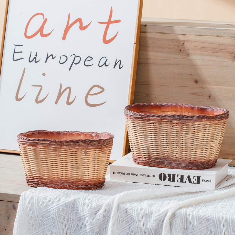 unique bamboo woven basket design succulent flowerpot home decoration cement pots