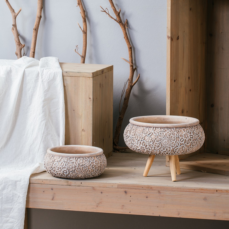 decorative indoor outdoor embossed cement pot succulents flower pots planter for home decor