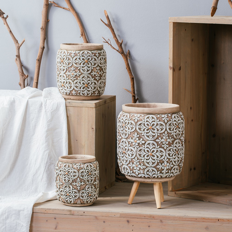 fashionable embossed design concrete pot home garden decor cement flower pots